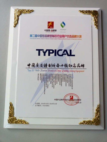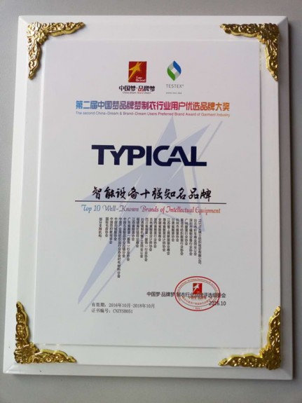 TYPICAL榮獲“智能設(shè)備十強(qiáng)知名品牌”和“中國質(zhì)造縫制設(shè)備十強(qiáng)知名品牌”