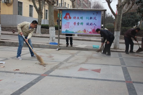 隨后,四個“學(xué)雷鋒”志愿者服務(wù)隊(duì)在隊(duì)長的帶領(lǐng)下對社區(qū)內(nèi)的花園、廣場進(jìn)行清掃、清潔。志愿者們在《學(xué)習(xí)雷鋒好榜樣》的歌聲鼓舞下干得熱火朝天,有的用掃帚和畚箕清理垃圾,有的用竹棍和火鉗掏出冬青樹里的塑料袋和紙屑,有的用抹布擦洗健身器材……大家不怕臟、不怕累,社區(qū)群眾深受志愿者的鼓舞和感動,也紛紛加入到打掃環(huán)境衛(wèi)生的行動中來。
