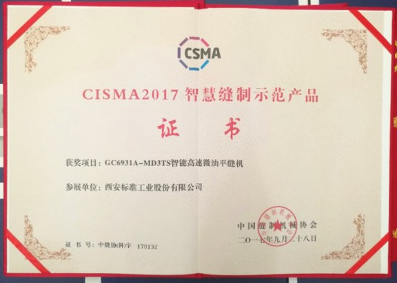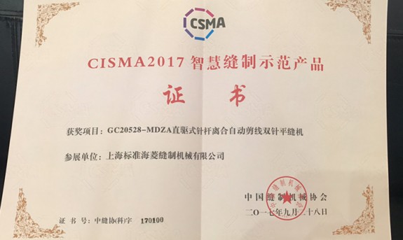9月28日,中國縫制機(jī)械行業(yè)首批團(tuán)體標(biāo)準(zhǔn)發(fā)布會暨CISMA2017智慧縫制示范產(chǎn)品頒獎儀式舉行?!癈ISMA2017智慧縫制示范產(chǎn)品”名單公布,公司5個產(chǎn)品榜上有名。分別是:“工業(yè)縫紉機(jī)智慧物聯(lián)”項(xiàng)目,標(biāo)準(zhǔn)牌“GC6931A-MD3TS智能微油高速平縫機(jī)”、“TW1-999L14D3T5-001直驅(qū)單針綜合送料自動剪線厚料平縫機(jī)”、“TC151-12070A全自動模板縫紉機(jī)”,海菱牌“GC20528-MDZA直驅(qū)式針桿離合自動剪線雙針平縫機(jī)”。