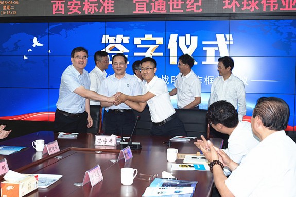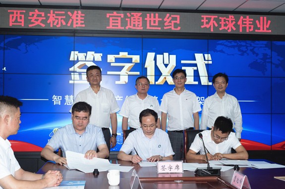 環(huán)球偉業(yè)總經(jīng)理趙建設(shè)、標(biāo)準(zhǔn)股份董事長(zhǎng)朱寅、宜通世紀(jì)董事長(zhǎng)鐘飛鵬共同出席合作協(xié)議簽署儀式,與三方代表共同見證了簽約。
