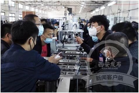 “面對從未接觸的領(lǐng)域,項目成立攻關(guān)小組、多個技術(shù)小組,既協(xié)同作戰(zhàn)又相互競爭提升。分組討論、技術(shù)攻關(guān)、整合資源、反復實驗,從市場反饋信息到技術(shù)提升,形成一個個閉環(huán)。最關(guān)鍵就是超聲波的技術(shù)攻關(guān)和突破,通過不斷創(chuàng)新、優(yōu)化和提升,最終達到每分鐘生產(chǎn)35片-40片口罩,達到用戶的要求。”參與項目技術(shù)研發(fā)的王林給記者講述著當時的緊張歷程。王勇也是當時參與項目眾多員工中的一員,盡管常年坐輪椅的母親病情加重,但項目上所有人都在爭分奪秒地拼,他毅然投入到工作中。“當時我們都是白天黑夜連軸轉(zhuǎn),都想?yún)⑴c企業(yè)這項重大轉(zhuǎn)型項目?!?nbsp; 疫情不等人,市場不等人,時間緊、任務(wù)重、工藝復雜,標準集團先后克服這些難題,前后10天,全自動口罩機項目、N95口罩機項目完全落地,單機日產(chǎn)N95口罩達5萬只左右。這看似標準集團遇到的市場機遇,其實更是一家建廠74年老企業(yè)技術(shù)核心深厚積淀的最好注解。事實上,在2020年新冠肺炎疫情剛剛爆發(fā)的時候,標準集團就瞄準防疫物資市場開始了標準方案的提供。春節(jié)期間,在市委市政府的安排部署下,在西安市國資委的統(tǒng)領(lǐng)下,標準集團就多次參與考察了西安的口罩生產(chǎn)情況,并積極響應(yīng)市國資委號召,投身于新建口罩生產(chǎn)線的實踐中,圓滿完成了12條一次性醫(yī)用口罩生產(chǎn)線和2條N95口罩生產(chǎn)線的總包建設(shè)任務(wù),有效化解疫情醫(yī)用口罩緊缺局面,滿足了西安市企業(yè)復產(chǎn)復工及各類學校復學的防疫物資供應(yīng)需求,在關(guān)鍵時刻發(fā)揮了國企擔當。