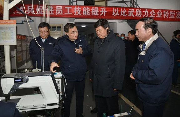 當(dāng)天,在李宏安董事長等企業(yè)管理者的陪同下,楊悅會(huì)長一行還參觀了標(biāo)準(zhǔn)展廳、口罩機(jī)生產(chǎn)示范線、威騰/模板機(jī)車間、物聯(lián)網(wǎng)示范線等地。楊悅會(huì)長對(duì)標(biāo)準(zhǔn)轉(zhuǎn)變發(fā)展思路、產(chǎn)品技術(shù)創(chuàng)新等方面的做法頻頻點(diǎn)贊。