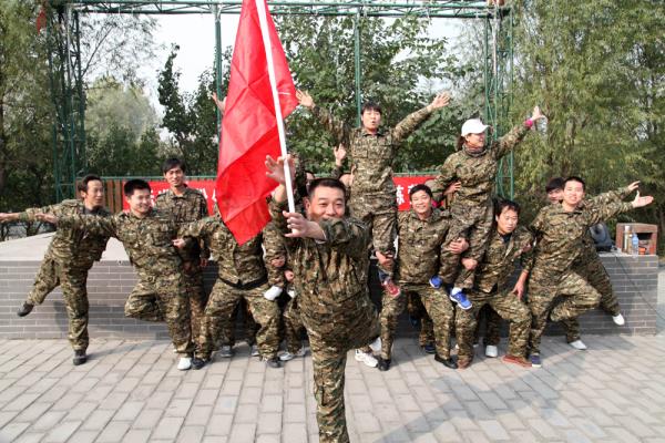 ??? 簡(jiǎn)單而愉快的熱身結(jié)束后,素質(zhì)拓展訓(xùn)練正式開始。74名參訓(xùn)人員分為四個(gè)團(tuán)隊(duì)進(jìn)行對(duì)抗拓展。各隊(duì)分別為自己的隊(duì)伍取了名字,選取了隊(duì)歌、隊(duì)旗和隊(duì)呼,在此后一天的訓(xùn)練中,所有學(xué)員都在為自己的團(tuán)隊(duì)盡著最大的努力。