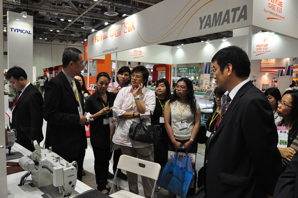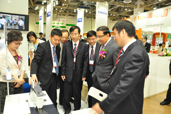 ???? 開幕式結(jié)束后,新加坡貿(mào)工部部長易華仁在主辦方陪同下參觀了公司展位,饒有興致地聽取了公司參展新品介紹,并就公司發(fā)展和技術(shù)發(fā)展進(jìn)行了了解,對公司新形象以及新品所體現(xiàn)出來的技術(shù)創(chuàng)新、節(jié)能環(huán)保給予了高度評價。中國縫制機(jī)械協(xié)會常務(wù)副理事長何燁也對公司在危機(jī)過后所展現(xiàn)出的中國企業(yè)的新姿態(tài)給予了充分肯定。